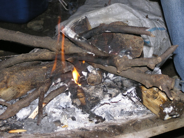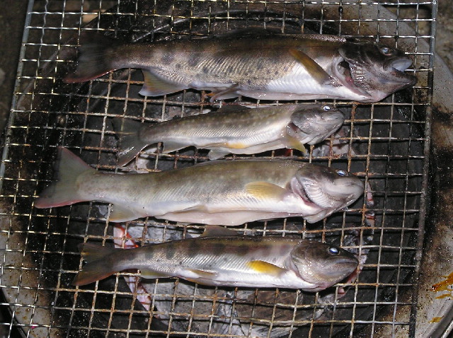 サイト近くで釣った魚は、前日作った生簀に入れて